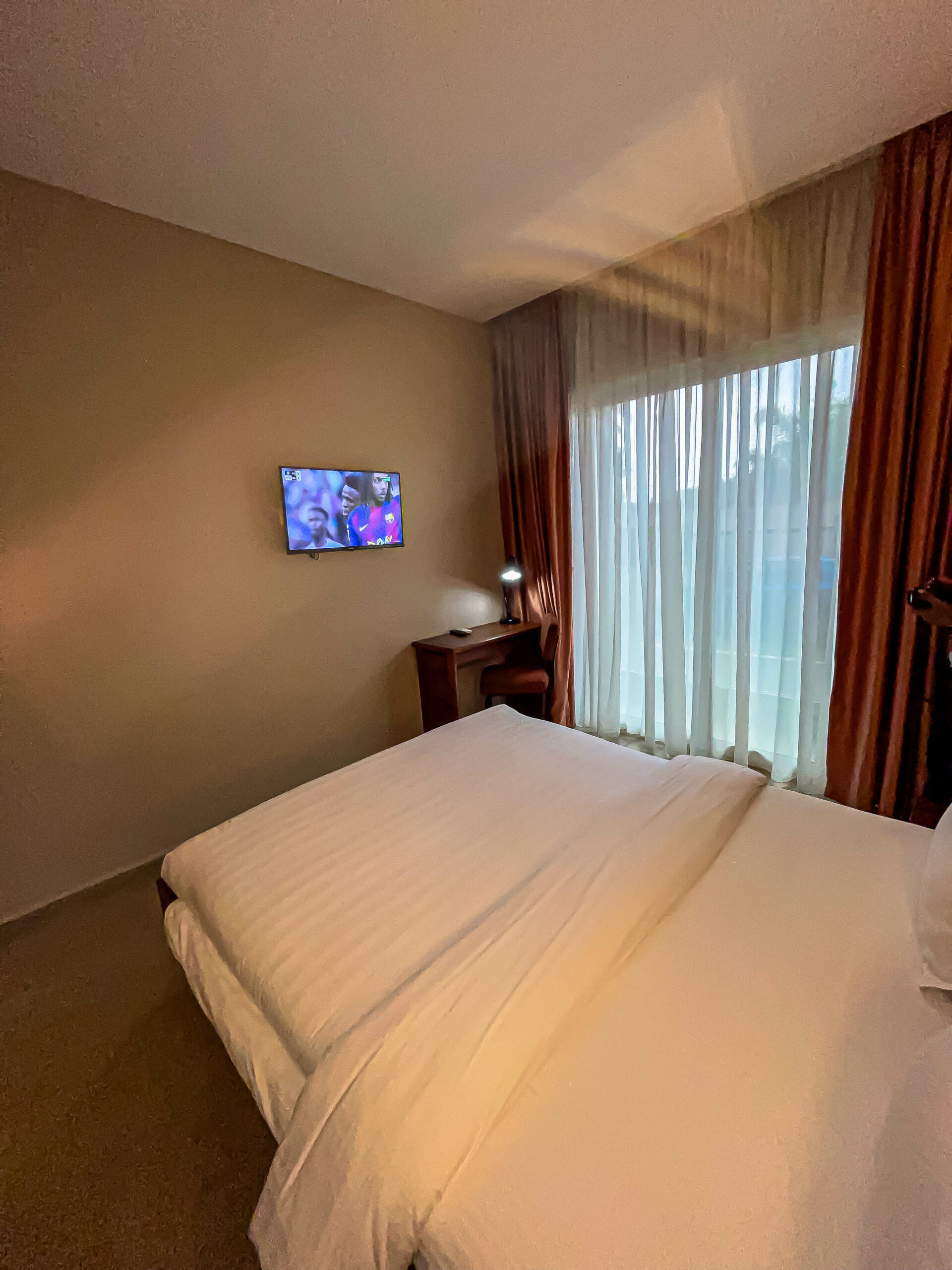 C’est une chambre moderne au décor subtil. Elle est équipée d’un lit double, d’un mobilier en bois local et d’une salle de bain privative. Ses principaux atouts : lit confortable avec matelas épais et oreillers anti acarien, fenêtre insonorisée avec rideaux occultant, Wi-Fi et chaîne TV satellite
